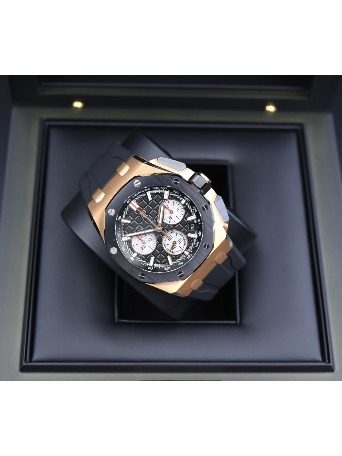 Если вы ищете не просто часы, а настоящее выражение статуса и стиля — Audemars Piguet Royal Oak Offshore 26420RO.OO.A002CA.01 точно для вас. Современно, надежно, элегантно и чуть-чуть агрессивно — всё, что нужно для современного мужчины!
