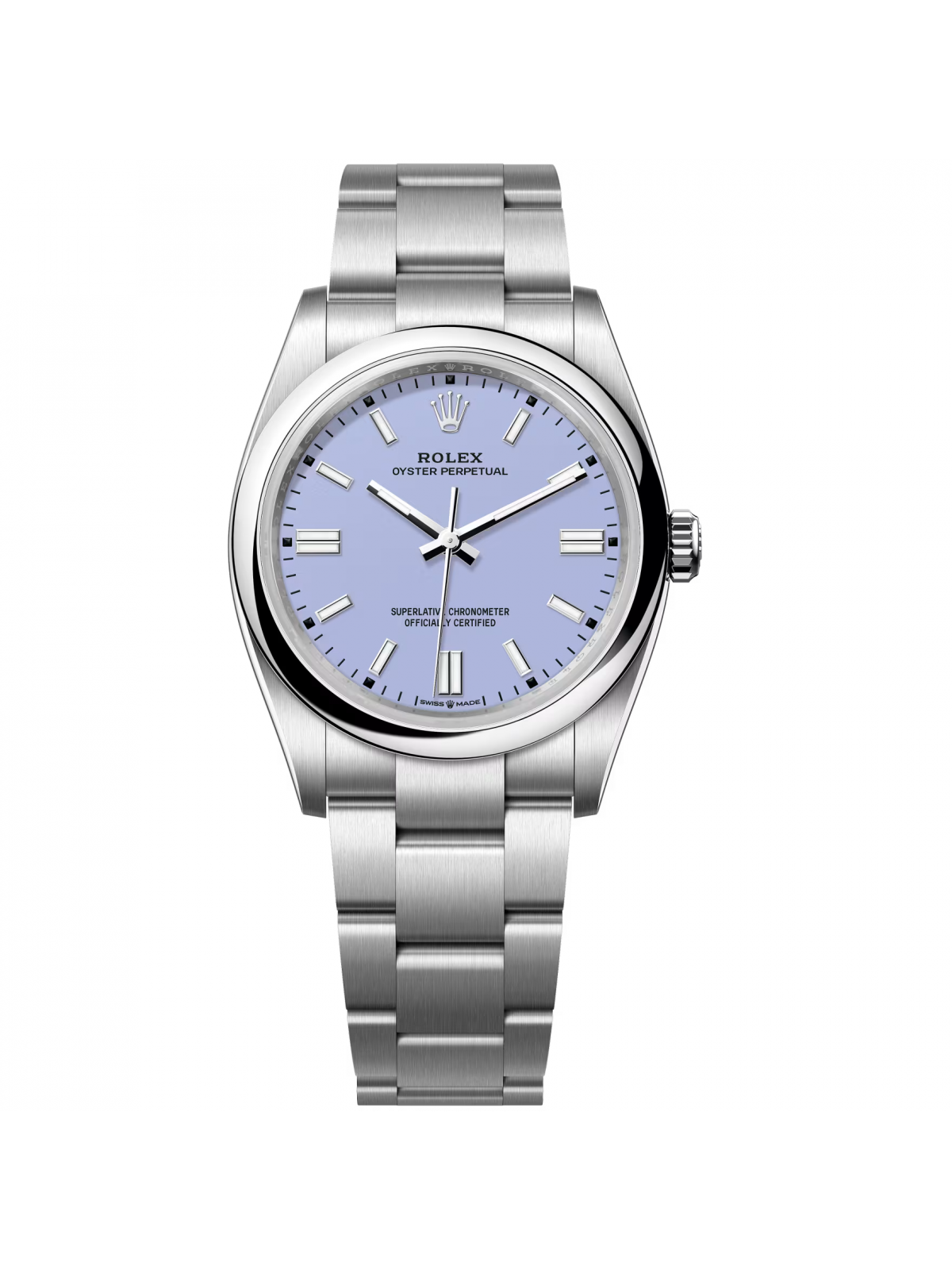 Обратите внимание на эти шикарные часы Rolex Oyster Perpetual 36 мм – настоящий must-have для каждой женщины, ценящей стиль и качество! Эти элегантные часы с корпусом из нержавеющей стали выглядят очень изящно и современно, а их голубоватый лавандовый циферблат добавляет особый шарм и утонченность. Размер 36 мм делает их идеальными для тех, кто любит умеренную, но заметную аксессуарку.