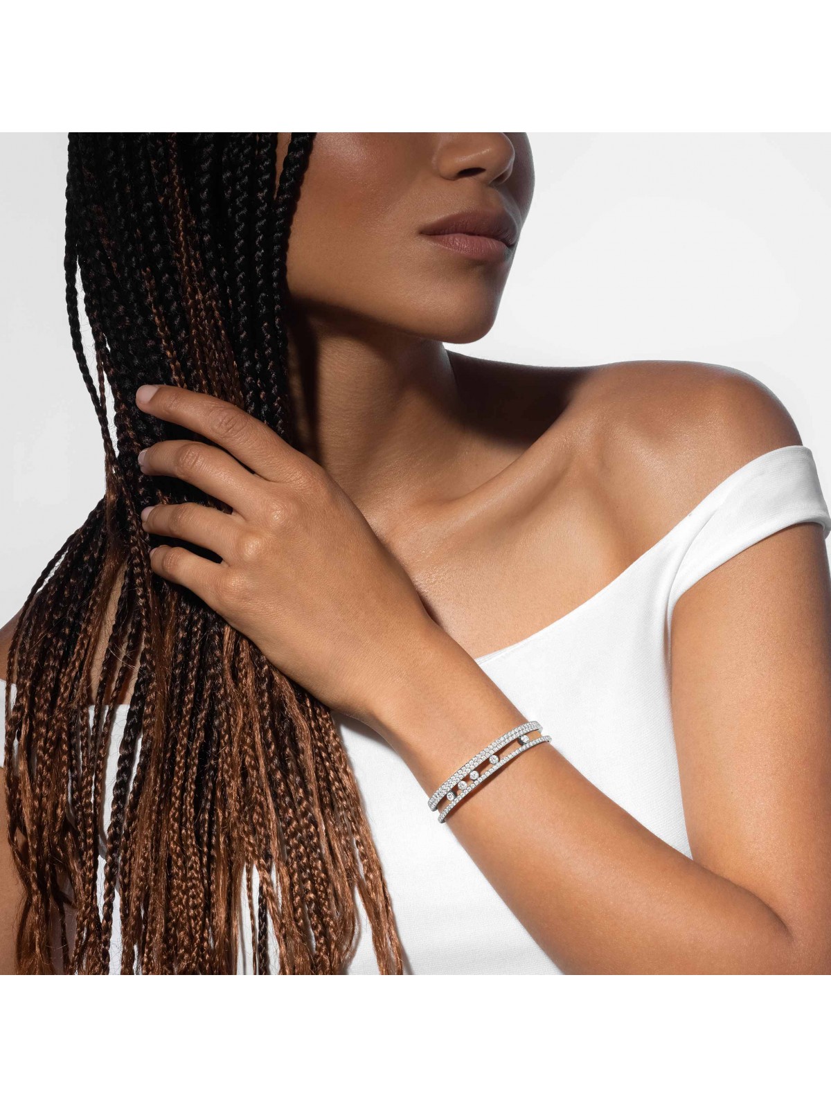 Ключевые характеристики: - Тип изделия: браслет - Материал: белое золото 18 карат - Ширина: 10 мм - Бриллианты: примерно 4.5 ct - Коллекция: Move - Референс: 06733-WG - Комплектация: полный комплект