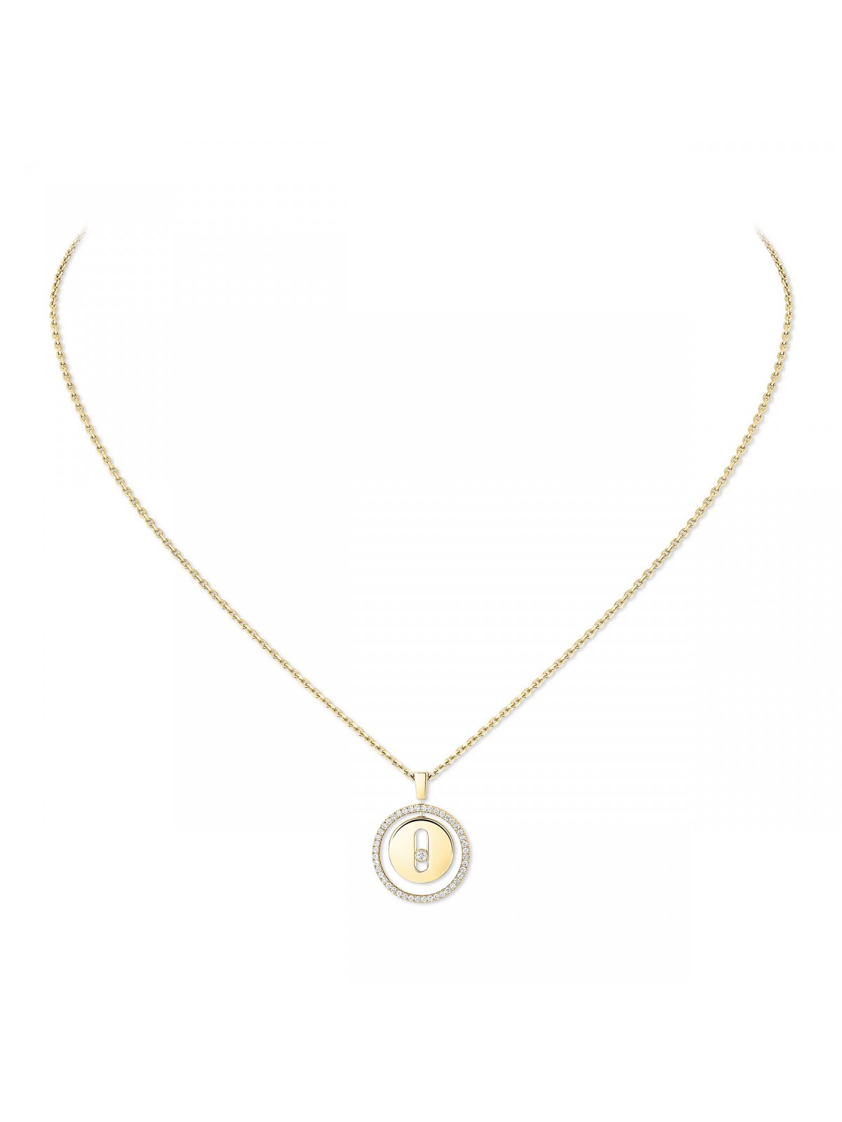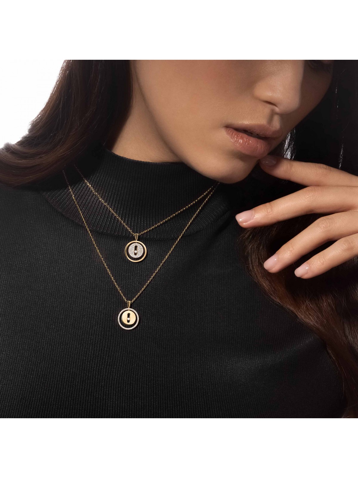Характеристики: - Тип товара: Ювелирные изделия - Название: Колье Messika Lucky Move SM 07396-YG - Референс: 07396-YG - Коллекция: Move - Материал корпуса: желтое золото 750 пробы (18K) - Украшение: бриллианты суммарно около 0,17 ct - Тип: Колье - Комплектация: полный комплект - Диаметр подвески: 15 мм - Длина цепочки: 45 см