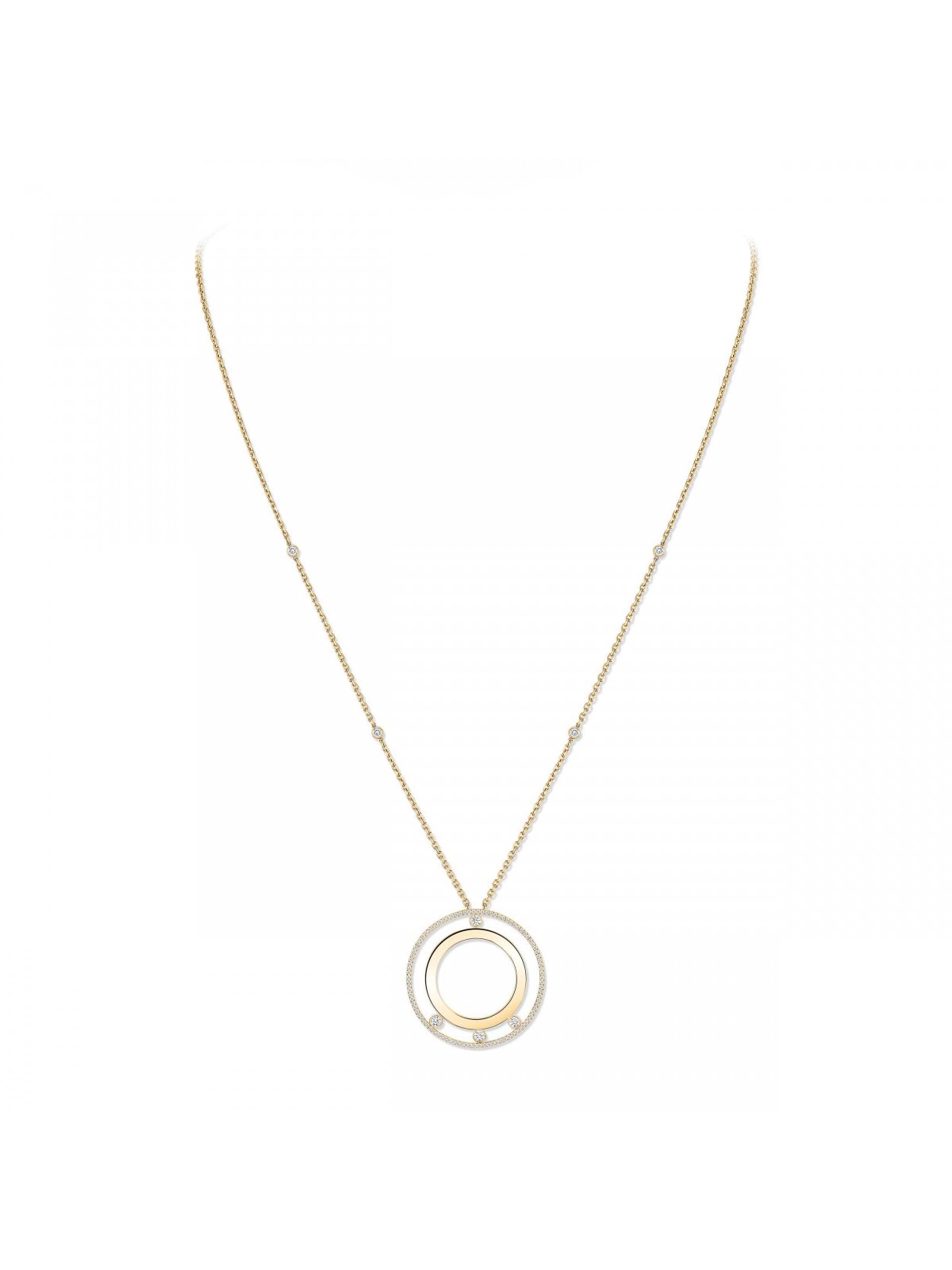 Характеристики: - Тип товара: Колье - Референс: 11169-YG - Коллекция: Move - Материал корпуса: желтое золото 750-й пробы - Диаметр кулона: 3,5 см - Длина цепочки: 80 см - Украшение: бриллианты ~0.78 ct - Комплектация: полный комплект